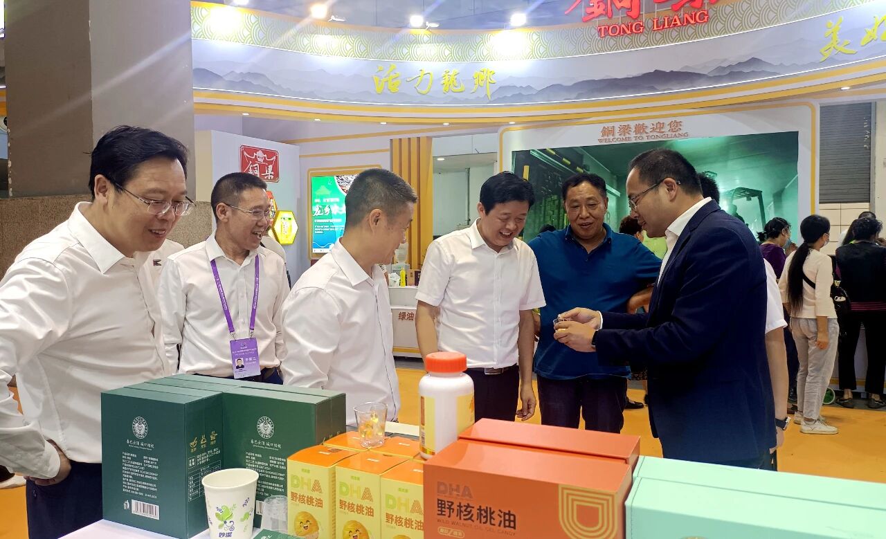 [城口县委副书记、县长董奕锋,城口县委常委、县工业园区党工委书记张国进莅临城口核桃展台调研指导。]