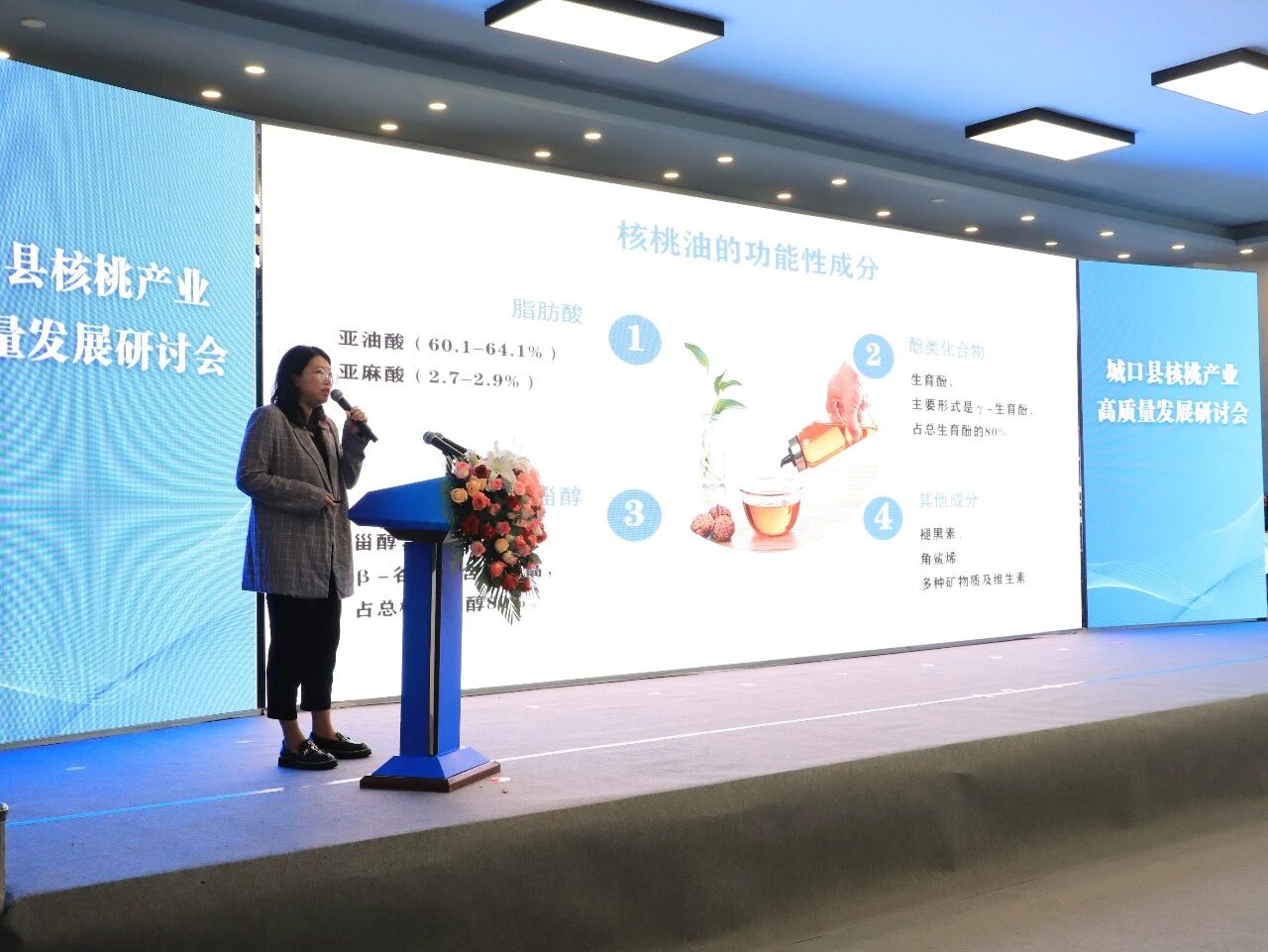 现场还举行了城口县核桃产业高质量发展研讨会,中国林科院张俊佩研究员、湖北林科院徐永杰副研究员、重庆三峡学院顾欣博士、重庆市林科院李秀珍分别就中国核桃产业现状及发展趋势分析、秦巴山片区核桃资源优势分析、核桃油营养价值及消费市场分析、重庆市核桃产业现状与发展建议作报告。