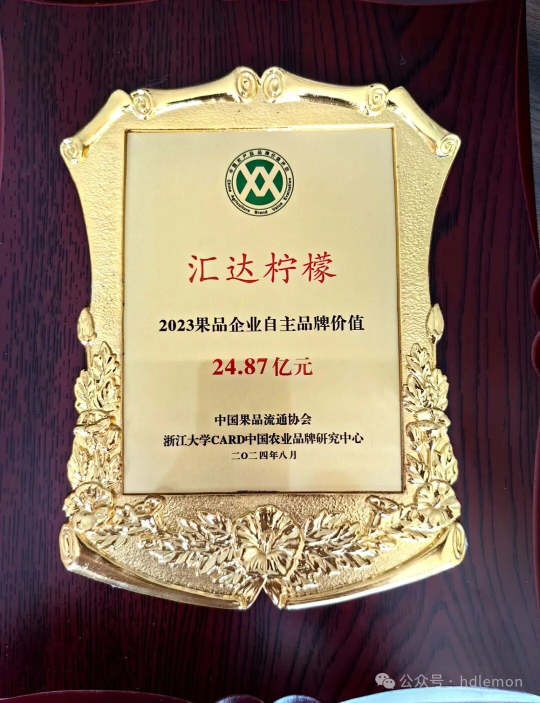 2024年8月23日,第九届中国果业品牌大会在云南丽江举办,重庆汇达柠檬集团应邀参加。大会发布《2024中国果品品牌价值评估报告》,“汇达柠檬”2023品牌价值24.87亿元,并入榜品牌感知力TOP10,品牌价值实现连年增长!