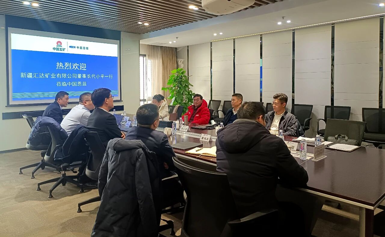 2025年2月17日,新疆汇达矿业有限公司董事长代小平一行赴中国恩菲工程技术有限公司北京总部考察,双方就新疆托里县橄榄岩(镁、硅、镍、钴、铁)冶金项目开展座谈,进行了深入研讨洽谈,一致期望在资源开发利用及产业链发展上达成合作。
