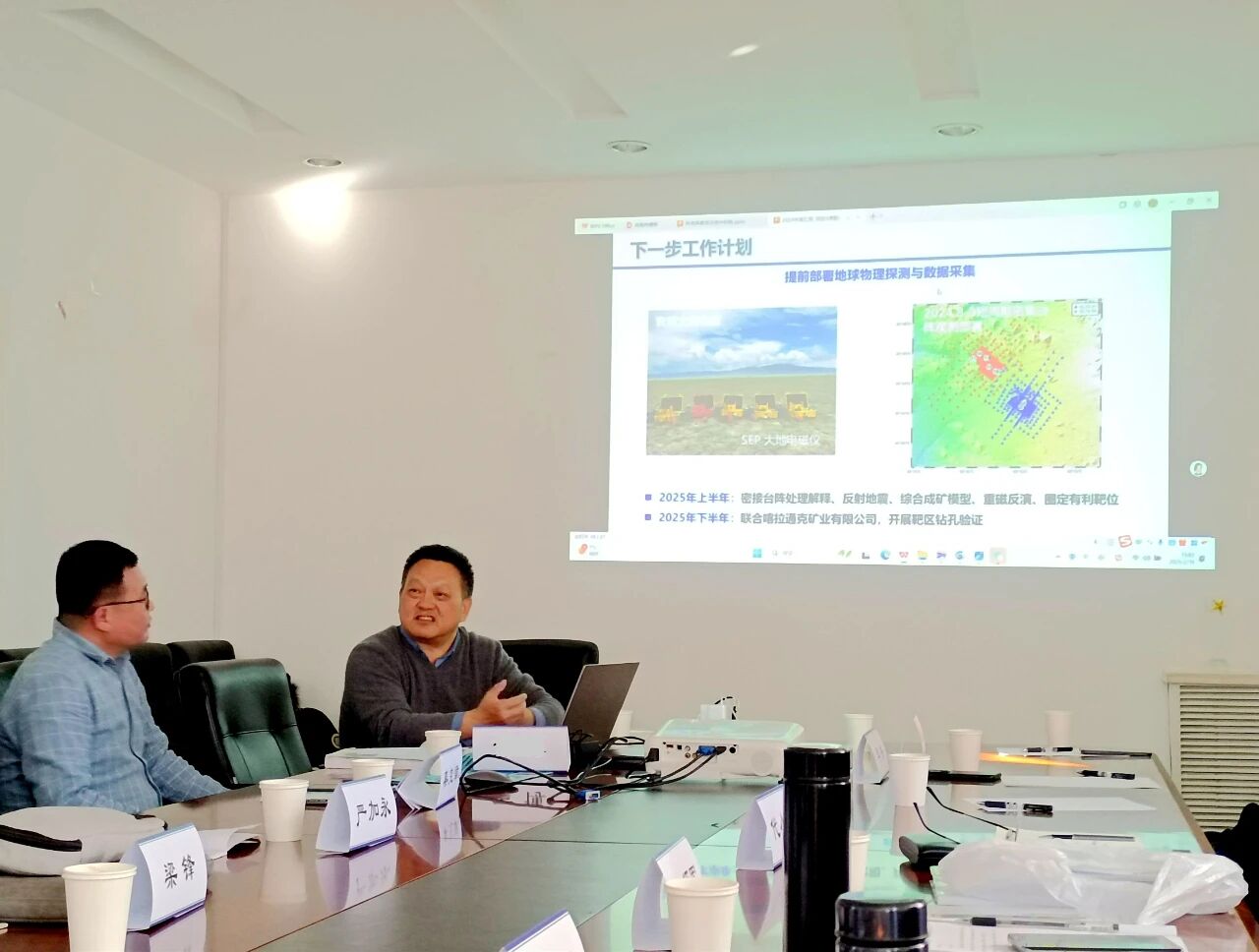 2025年2月18日,新疆富蕴县人民政府副县长梁威,新疆汇达矿业有限公司董事长代小平一行赴中科院地质与地球物理研究所(以下简称“中科院研究所”)拜访考察,与中科院地质与地球物理研究所副所长万博,中科院地质与地球物理研究所固体矿产资源研究室主任秦克章等10余位领导、专家,就新疆富蕴县喀拉通克铜镍矿外围新疆汇达矿业科克库都克铜多金属矿、新疆托里县克孜勒阔腊以东橄榄岩多金属矿2024年找矿成果进行分享总结,对2025年勘查工作进行筹划。新疆富蕴县自然资源局党组书记李杰,新疆富蕴县商科工信局党组书记赵军,新疆汇达矿业有限公司总工程师王宁雄,新疆广利丰盈矿业有限公司董事长代领军参加。