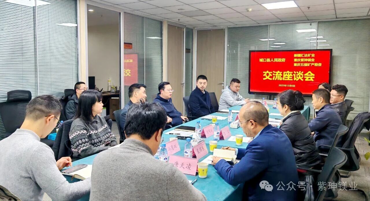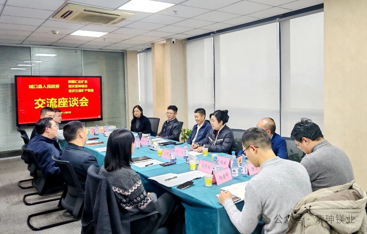 为深化项目合作,激发产业动能,共同推动橄榄岩镁多金属矿(镁、硅、镍、钴、铁)综合利用项目加快落地见效,12月6日,城口县人民政府与新疆汇达矿业、重庆紫珅镁业、重庆五福矿产勘查公司在重庆召开交流座谈会。城口县委常委、县政府常务副县长张国进出席会议,新疆汇达矿业董事长代小平汇报项目相关情况。城口县经信委、城口县绿发集团、城口县园区开发公司、重庆紫珅镁业公司、重庆五福矿产资源勘查公司、律师事务所、会计师事务所等相关负责人参加会议。