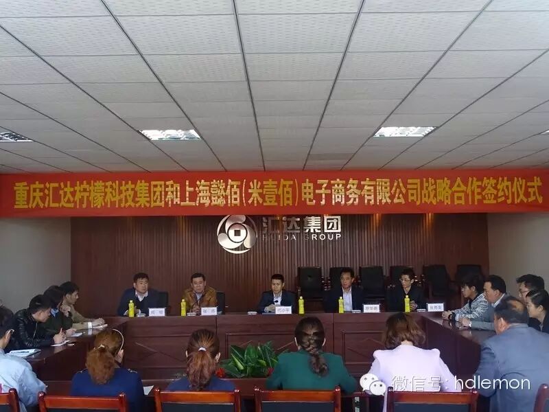 2016年3月26日上午,春风习习,空气中弥漫着柠檬花香的味道,重庆汇达柠檬与上海米壹佰战略合作协议签约仪式在汇达柠檬集团总部会议室隆重举行。汇达柠檬董事长代小平,上海懿佰电子商务董事长张伟等双方主要领导出席了此次活动。